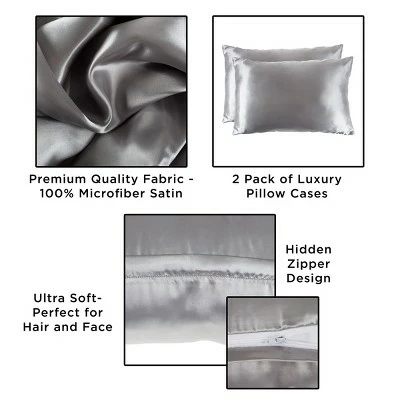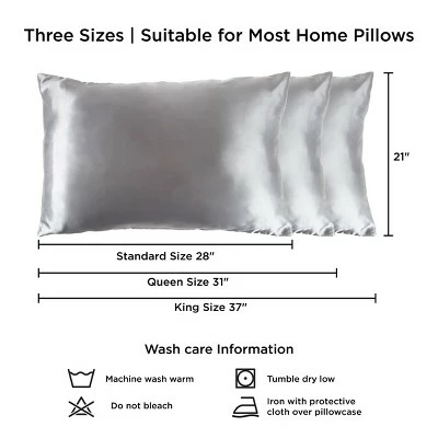 - PRODUCT DETAILS- Material: Polyester Microfiber Satin, Dimensions: (L) 37-in x (W) 21-in, Set of Two, King Size, 230 Thread Count, Machine Washable on Delicate Cycle, Color: Silver Gray