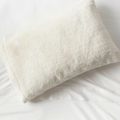Breathe new life into your bedroom decor in a flash by simply dressing up your pillow in the Standard Faux-Fur Solid Pillowcase from Threshold™. Made of faux-fur fabric with a soft, brush-like low pile, this rectangular pillowcase brings a touch of opulent appeal to your bedscape. It’s finished in a neutral color palette that readily pairs with any printed, patterned or solid-hued sheets and linens. The 30-inch by 20-inch pillowcase fits standard/queen size pillows, and the open end makes it easy to the slip pillow insert in and out when you want to wash the case.
