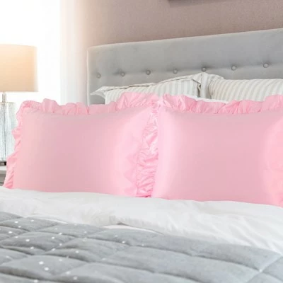 - Product Name: 2 Pcs Queen 20″x30″ Silk Satin Ruffled Pillowcase Pink – PiccoCasa