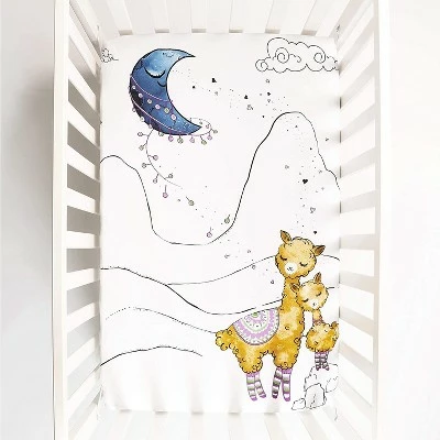 Transport Your Little One To A Land of Magic And Wonder. Designed by parents, the super soft JumpOff Jo Llama and Mama Mini Crib Sheet is lovingly made from 100% cotton to be gentle on your baby’s skin. Featuring an adult llama snuggling up to its baby llama, this Mini Crib Sheet fits mini crib mattresses and standard sized playards, featuring extra-deep corners for the most secure fit. Available in an original design, this adorable crib sheet places your little one in a cozy place to sleep and dream.Β Β Fabric Care Details: Machine wash cold with like colors. Tumble dry low and cool iron if needed. Materials: 100% cotton.