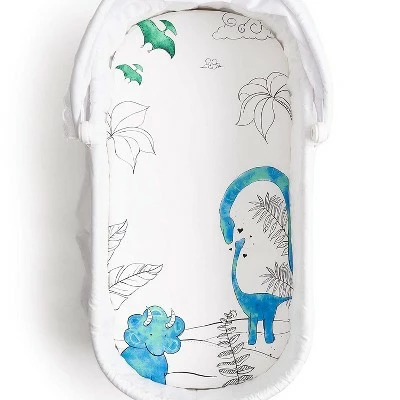 - Original Design – Tiny Dino is an Original Design by JumpOff Jo. The teals, greens and blue colors on the bassinet sheet will soothe your baby and inspire whimsical dreams in the nursery.