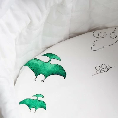 Caution: Dino-snores Ahead! Designed by parents for, the super soft JumpOff Jo Tiny Dino Bassinet Sheet is sure to put a smile on your baby’s face. An original design of a dinosaur gathering, mother and baby Brachiosaurus cuddle near their Triceratops and flying Pterodactyl friends. This Crib Sheet illustrates that your love for your little one is a big as a dinosaur, and will look great in a variety of rooms!Β Fabric Care Details: Machine wash cold with like colors. Tumble dry low and cool iron if needed. Materials: 100% cotton.