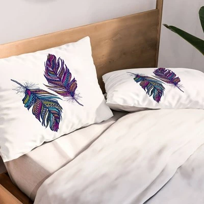 - Pair that construction with art that will knock your socks off and you’ve got the Stephanie Corfee Festival Feathers Standard Pillow Sham by Deny Designss.