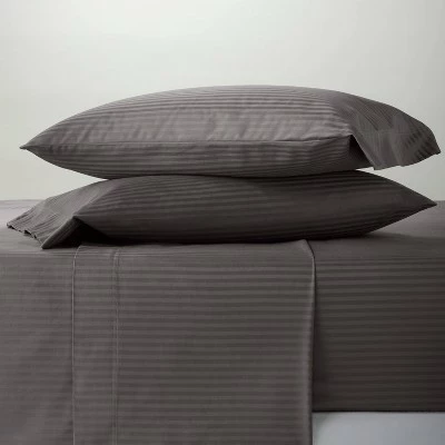 Turn your sleep space into a soothing oasis while adding a touch of sophisticated style to your decor with the Damask Solid Sheet Set from Threshold Signature™. Crafted from 100% cotton fabric for breathability and long-lasting use, this premium sheet set features a 400 thread count construction in a damask weave for a luxurious look and feel you’ll love relaxing into. The sheets fit mattresses up to 18 inches in depth and the pillowcases slip onto standard size pillows for easy integration into your bedding collection. Plus, the sheet set comes in solid shade for a tidy look that blends beautifully with any decor scheme. Add this sheet set to your bedding ensemble for a simple way to enjoy a touch of luxury each and every night.