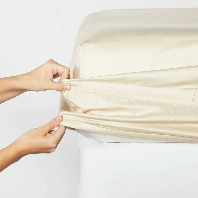 You’ll love the luxurious feel of this 500 Thread Count Washed Sateen Fitted Sheet from Casaluna™. The 100% sateen construction is made with Supima cotton for long-lasting quality and color retention. Elastic in the corners easily stretches to cover your mattress and provide a secure hold. This sheet has a super-soft feel sure to keep you warm throughout the seasons, and comes in several neutral colors to effortlessly match your bedroom decor.