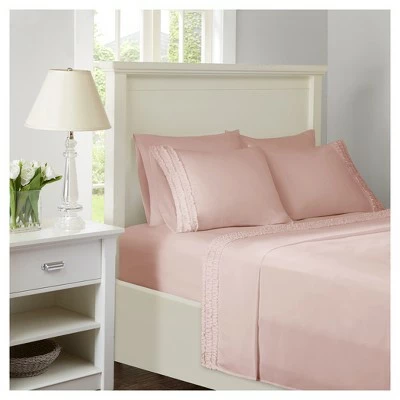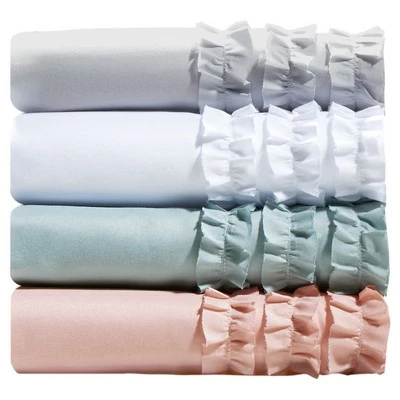 The Ruffled Sheet Set offers a cute and sophisticated update to your bed. This microfiber sheet set flaunts a ruffled design adding a graceful touch as well as dimension to create a charming shabby chic look. This ruffled sheet set is soft to the touch and also OEKO-TEX certified, meaning it does not contain any harmful substances or chemicals, ensuring quality comfort and wellness. Sheet set includes 1 Fitted Sheet, 1 Flat Sheet, and 4 Pillowcases (2 in Twin).