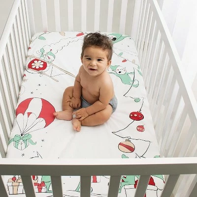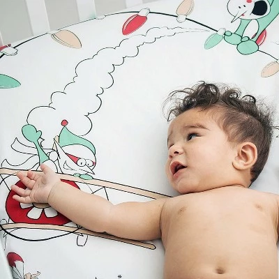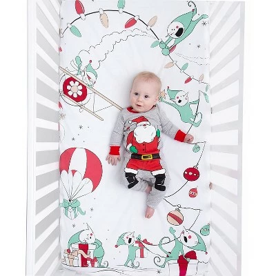 - Original Design Crib Sheet – You wonβt be able to find this playful pattern anywhere else. The whimsical design of mischievous Christmas elves preparing holiday decorations and delivering presents will capture your childβs imagination, and yours. The reds and greens on the white sheet will perfectly complement your holiday decor in your nursery or kidsβ bedroom.