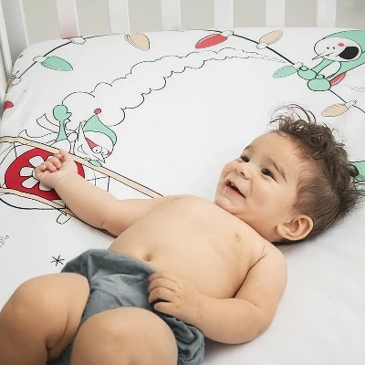 A Festive Crib Sheet to Inspire Your child’s Christmas. Dreams Designed by parents, the super soft JumpOff Jo Christmas Mischief Crib Sheet is lovingly made from 100% cotton to be gentle on your baby’s skin. Featuring adorable elves with red and green decorations on a white background, this holiday crib sheet fits all standard-size crib mattresses, designed with extra-deep corners for the most secure fit. Available in an original design, the festive red and green crib sheet is a great accent to your child’s crib for the holidays. Fabric Care Details: Machine wash cold with like colors. Tumble dry low and cool iron if needed. Materials: 100% cotton.