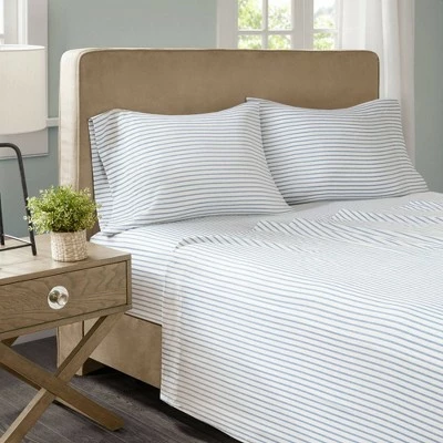 The Chambray Striped Microfiber Sheet Set offers a casual and comfortable update to your bed. Featuring a chambray stripe print, the ultra-soft microfiber fabric in combination with the sharp color palette handsomely complements your bed. These sheets are also OEKO-TEX certified, meaning they do not contain any harmful substances or chemicals, ensuring quality comfort and wellness. Irresistibly soft, this chambray stripe sheet set is machine washable and includes: 1 Fitted Sheet, 1 Flat Sheet, and 2 Pillowcases (1 in Twin).
