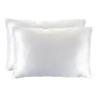 - PRODUCT DETAILS- Material: Polyester Microfiber Satin, Dimensions: (L) 28-in x (W) 21-in, Set of Two, Standard Size, 230 Thread Count, Machine Washable on Delicate Cycle, Color: White