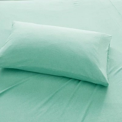 The Heathered Cotton Jersey Knit Sheet Set will remind you of the comfort and softness of your favorite T-shirt. The heathered colors create a rich tonal look that pairs easily with any bedding set. Made from 100% cotton jersey knit, this sheet set is incredibly soft and comfortable. These jersey sheets also have an antimicrobial treatment for health and wellness – kills and prevents bacteria buildup, helps reduce odors, and enhances hygiene. These sheets are also OEKO-TEX certified, meaning they do not contain any harmful substances or chemicals, ensuring quality comfort and wellness. The fitted sheet fits up to a 15 inch mattress. Machine wash in cold water and tumble dry on low to prevent shrinkage.