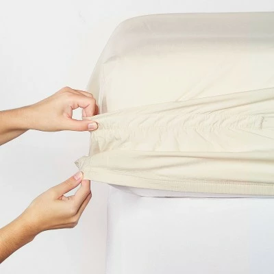 Update your bedding for an ultimate crisp, comfortable sleeping setup with the Washed Supima Percale Fitted Sheet from Casaluna™. Made with 100% Supima cotton in a breathable percale construction, this fitted sheet comes prewashed for softness and features deep corner elastic pockets to firmly hold the fitted sheet in place on your mattress. The luxurious feel of 250 thread count percale cotton offers a cool sleep for warm nights, and convenient perimeter elastic with a sewn-in “Top or Bottom” tag makes it easier to make your bed for a comfy night’s sleep.