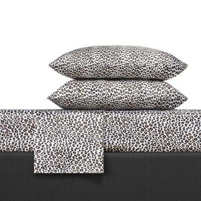 The playful and eye-catching faux leopard print of Betseyβs Leopard by Betsey Johnson is the perfect way to bring an extra bit of flair and temptation to the bedroom. Every piece of this satin bed sheet set is soft to the touch and can be used to playfully contrast the look of your space or complement your Betsey Johnson inspired dΓ©cor. Available in queen and king sizes, the set includes a flat sheet, two pillowcases, and a fitted sheet that is fully elasticized so that it fits your mattress snugly. Additional pillowcase pairs sold separately. Ensemble is machine washable for easy care. Queen sheet set includes: one queen flat sheet (102″L x 88″W), one queen fitted sheet (80″L x 60″W) and two standard pillowcases (20″L x 30″W), king sheet set includes: one king flat sheet (102″L x 104″W), one king fitted sheet (80″L x 78″W) and two king pillowcases (20″L x 40″W)