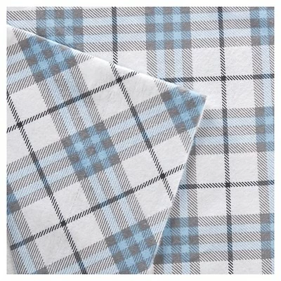 Stay cozy and warm with the Inverness Angle Flannel Sheet Set (California King Sizing). This luxurious blue set with a plaid pattern includes 1 flat sheet, 1 fitted sheet and 2 pillow cases. With brushed cotton flannel on both sides that is soft to the touch, this bedding set will make sleep time super-comfortable, especially in the winter.