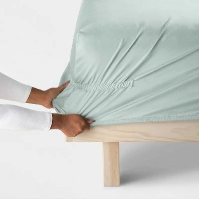 Give your bed a new look and feel with a 400-Thread Count Solid Performance Sheet Set from Thresholdβ’. Cut from 100% cotton fabric with a thread count of 400 and a sateen finish, this bedding set creates a perfectly luxurious sleeping space, and the solid-color design mixes well with a wide variety of styles for easy integration into your bedding ensemble. Wrinkle-, pill- and shrink-resistant construction keeps these sheets looking their best, while top and bottom labels make placement a breeze. Simply pair with your choice of comforter or quilt and a bank of pillows for a bedding upgrade that will have you counting the minutes until bedtime.
