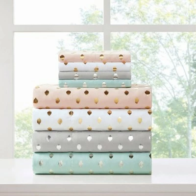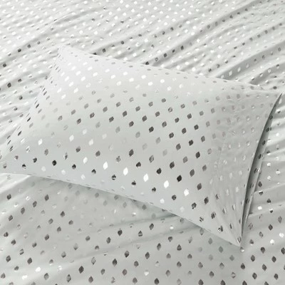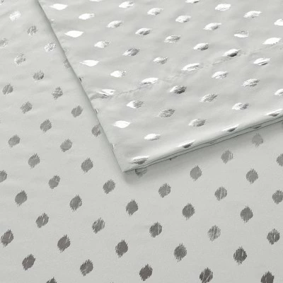 Add a touch of glam to your bedroom with the Metallic Dot Printed Sheet Set. A metallic Ikat-style dot print is brilliantly displayed on the soft-hued fabric for a stunning modern look. Made from ultra-soft microfiber, this printed sheet set provides exceptional comfort and a contemporary style to update your bedroom decor. The fitted sheet fits mattresses up to 16 inches. These metallic sheets are also OEKO-TEX certified, meaning they do not contain any harmful substances or chemicals, ensuring quality comfort and wellness.