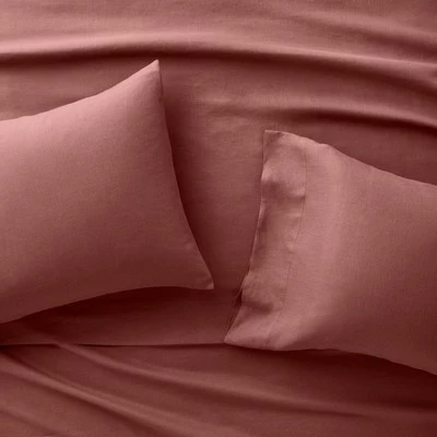 Turn your bedroom into an oasis of comfort and calm with the 100% Linen Solid Sheet Set from Casaluna™. This set of linen sheets comes with a fitted sheet, flat sheet and two pillowcases, all made of breathable linen, nature’s perfect fabric. Thanks to the 100% linen construction, these sheets breathe well for comfortable sleeping in any season, and they offer a luxurious texture that softens beautifully over time. The fitted sheet stretches to fit most mattress depths between 9 and 18 inches, and helps hold your sheets in place for a perfect fit. Plus, you can rest easy knowing that this item is certified Made in Green — tested for harmful substances and produced sustainably. Just select your perfect shade from a variety of soothing color options to create a beautiful look and feel you’ll love settling into each night. Linen sheets naturally produce lint from dryer. It will reduce over washes. To avoid lint; line dry.
