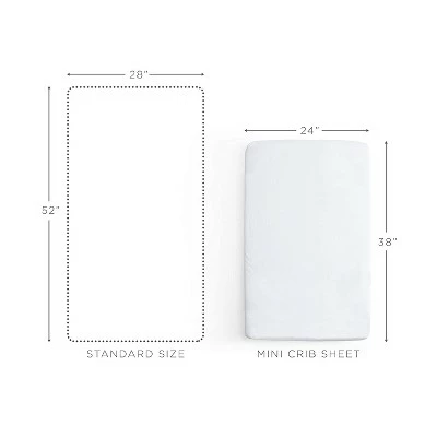 - For Mini Cribs & Playards – Measuring 24β x 38β x 5β, this mini crib sheetβs fitted sides ensure a smooth, snug, and secure fit. Our sheet fits Pack βn Play and mini crib mattresses and standard, portable crib or playpen mats.