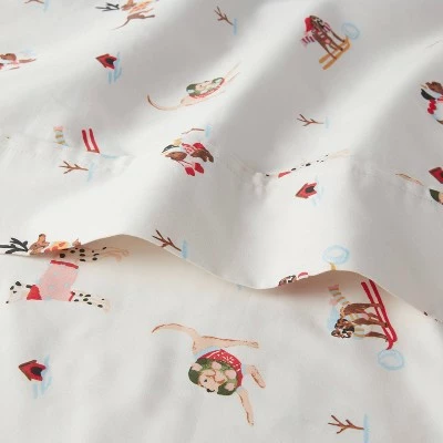 Introduce holiday charm and comfort to your sleep space with the 400 Thread Count Holiday Pattern Performance Sheet Set from Threshold™. Adorned with a cheerful holiday-inspired print and color palette with a smooth sateen finish, this performance bedding set is crafted from 100% cotton, the natural material allowing circulation that helps to keep you cool, dry and comfortable all night long. The cotton sheet set includes one flat sheet, one fitted sheet and a matching pillowcase to help you instantly upgrade the look and feel of your bed.