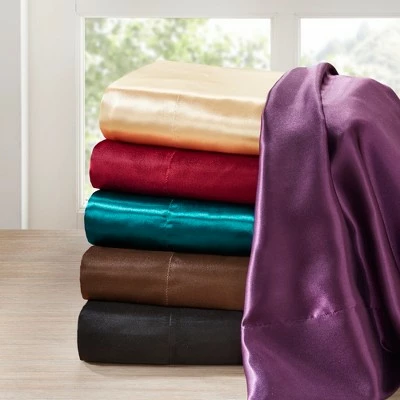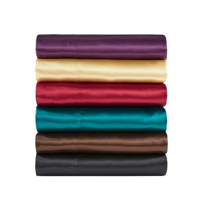 Sleep in luxurious comfort with the Satin Wrinkle-Free Luxurious Sheet Set. Available in several lustrous solid colors, these satin sheets provide a silky and smooth feel that is durable and wrinkle-free. Also included are 2 additional pillowcases to add more lavish style to the satin sheet set. Unlike cotton sheets, these satin sheets do not shrink and are ready to use without additional ironing or steaming. These satin sheets are also OEKO-TEX certified, meaning they do not contain any harmful substances or chemicals, ensuring quality comfort and wellness. Set includes: 1 Flat Sheet, 1 Fitted Sheet, and 4 Pillowcases.
