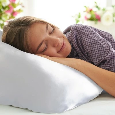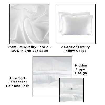- PRODUCT DETAILS-Material: Polyester Microfiber Satin, Dimensions: (L) 31-in x (W) 21-in, Set of Two, Queen Size, 230 Thread Count, Machine Washable on Delicate Cycle, Color: White