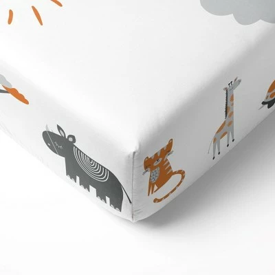 - Product Name: Bacati – Safari Animals Photo Op Aqua Orange Gray 100 percent Cotton Universal Baby US Standard Crib or Toddler Bed Fitted Sheet