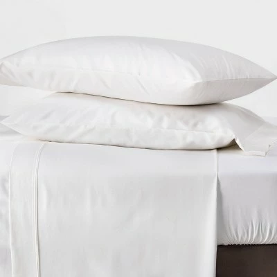 After a long day, drift off to sleep with your head cradled in the luxurious feel of the 800 Thread Count Solid Performance Pillowcase Set from Threshold Signature™. The two pillowcases in this set are made from 100% cotton with a thread count of 800, giving them an ultra-soft, breathable feel that’ll keep you sleeping comfortably all night. The smooth sateen weave adds to the comfort of the pillowcases while also giving them a chic appearance you’ll love incorporating into your bedroom decor. The sateen pillowcases come in a variety of soft neutral hues that are easy to coordinate with your existing decor and bring a relaxing vibe to your bedroom.