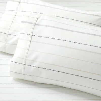 Anchor your bedding ensemble with the 2-Pack Cotton Percale MultiStripe Pillowcase Set from Hearth & Hand™ with Magnolia. Crafted from percale cotton fabric, this pillowcase set is wonderfully soft to the touch and great for year-round use. The pillowcases come in a set of two, adorned with a multistriped design in neutral hues on a cream-color background that goes with any decor style. Pair them with solid sheets and a coverlet in complementing prints or solid colors for a classic look, and when it’s time for a refresh, simply toss them in the washing machine and tumble dry.